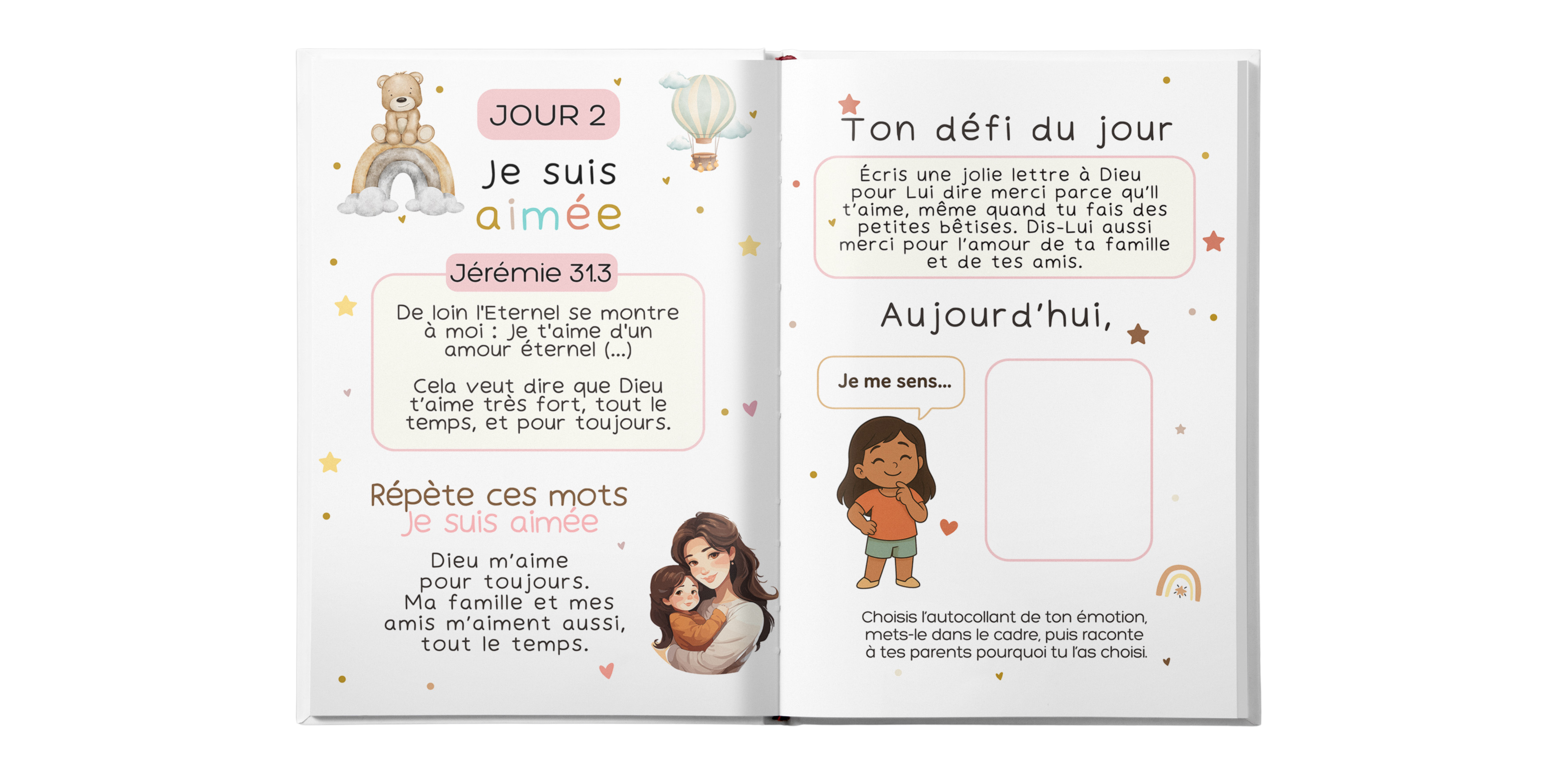 Parce qu’un enfant n’a pas seulement besoin d’être aimé. Il a besoin de savoir qu’il est aimé — profondément, durablement, inconditionnellement. Offrir ce carnet comme cadeau, c’est semer dans le cœur d’un enfant des paroles de vie, alignées avec ce que Dieu dit de lui.