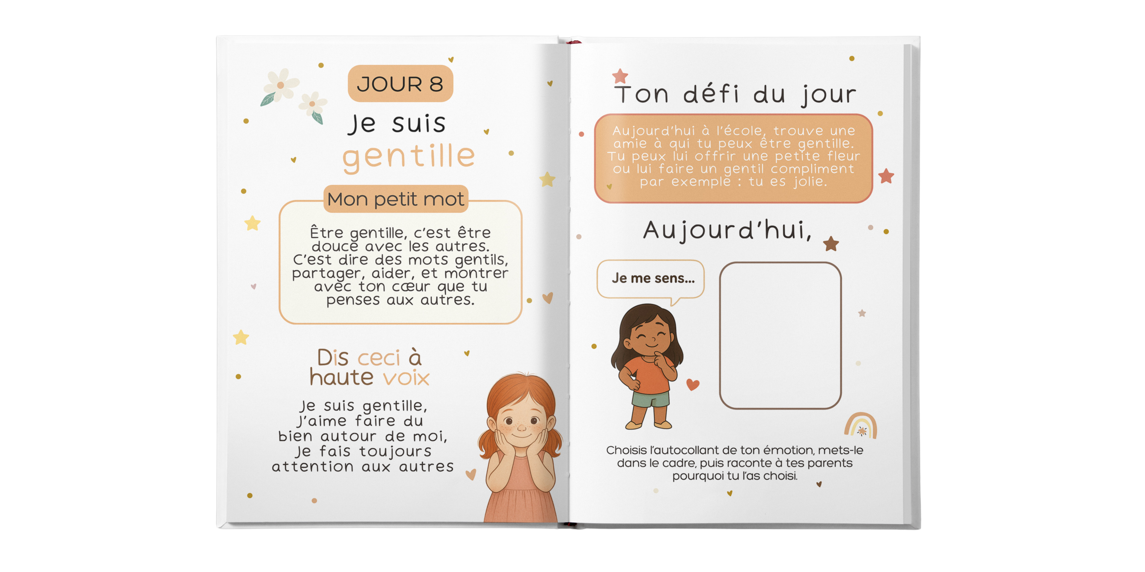C'est pour répondre à ce besoin essentiel que j'ai crée ce carnet. Un espace doux, et structuré où l'enfant, jour après jour :